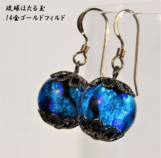 Luxurious hotaru glass earrings with 14KGF earring hooks